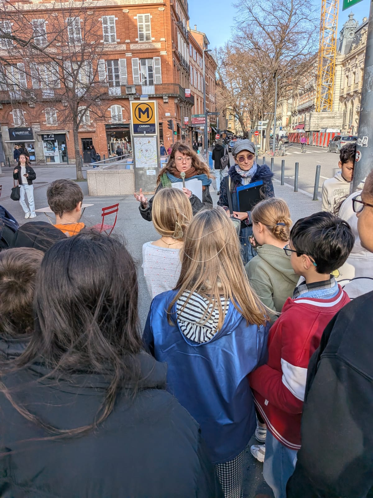 La classe de 6e5 a participé à une visite-déambulation dans la ville, rencontrant une guide-historienne, un comédien et une climatologue. L'objectif : réfléchir à l'adaptation, dans un milieu au bâti historique dense, à l'adaptation de la ville au réchauffement climatique. Les élèves ont pu mieux faire connaissance avec leur espace proche, et se rendre dans des lieux insolites assez méconnus.
