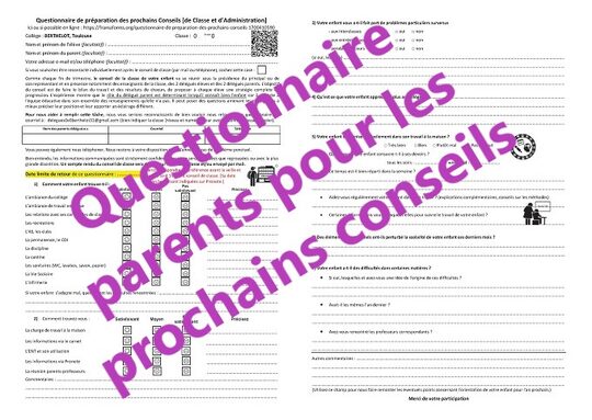 Questionnaire de préparation des prochains Conseils (Conseil de Classe du 1er trimestre et Conseil d'Administration)