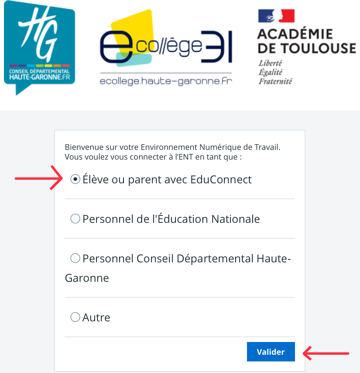 Vous accédez ainsi à votre espace ENT :
