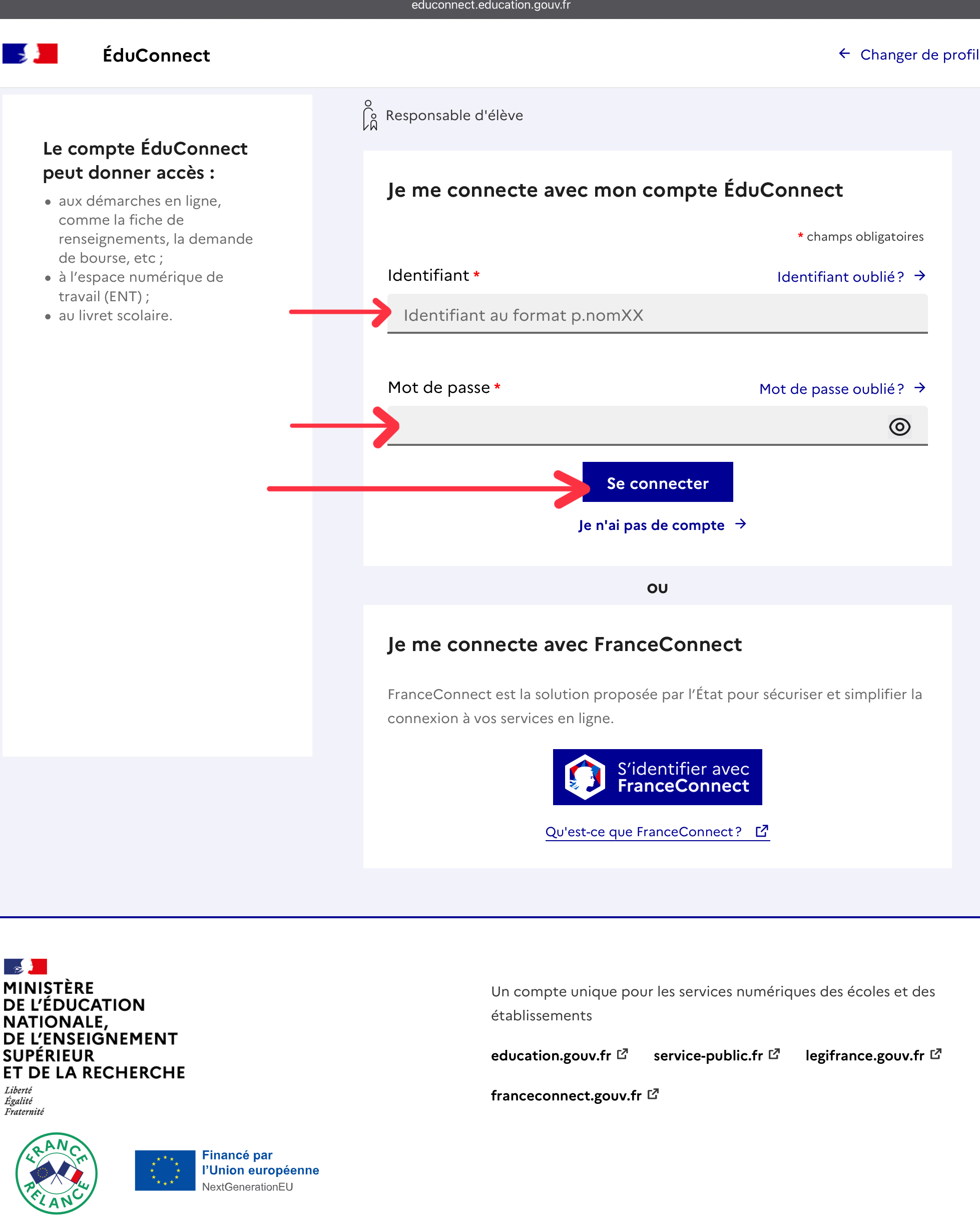Comme pour l'accès à l'ENT, vous devrez vous identifier via EduConnect.